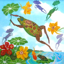 PostersZodiacWar & PeacePrintsFlights of FancyFrogs use Nasturtiums as parachutes. A bird sits on eggs that are clocks. Butterflies live in a castle in the sky. Gerry Simboli looks at the life and times of creatures in a unique way. Each giclee print is ready to frame and is accompanied by a story. Toys & TeddiesWine Creations: Wine WhimsyWine Creations: RegionsCoffeeTea |
